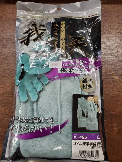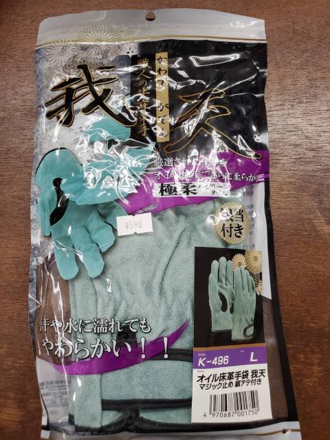 我天 オイル床革手袋 K-496 マジック止め 銀アテ付き