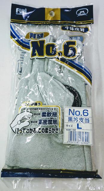 富士グローブ No.6 背縫い皮手 黒当て付き